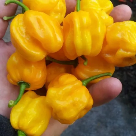 A Pimenta Habanero (Capsicum chinense), neste caso a variedade Habanero Amarelo (yellow), é provavelmente a pimenta mais famosa em todo o mundo. O nome “Habanero” é derivado de Havana, capital de Cuba. Esta pimenta em forma de lanterna, pequena e enrugada é considerada uma das pimentas mais picantes entre as picantes. O sabor da Pimenta Habanero é frutado, com notas de citrinos e um aroma floral característico. A Pimenta Habanero é rica em vitamina C, fornece excelentes níveis de betacaroteno, licopeno e outros carotenoides (provitamina A), e possui propriedades estimulantes, anti-sépticas e digestivas.