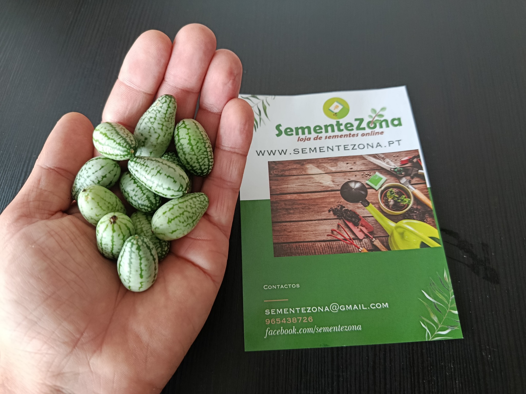 A Mini Melancia (pepino) Cucamelon é uma minúscula melancia (entre 2 a 3cm) originária da América Central, que é extremamente popular desde o tempo dos Aztecas. É um fruto raro, absolutamente delicioso e refrescante, que providencia um sabor semelhante ao pepino, com um toque de sabor a limão. A Mini Melancia pode-se consumir directamente a partir da planta, em saladas ou pode-se conservar para consumir em pickles.